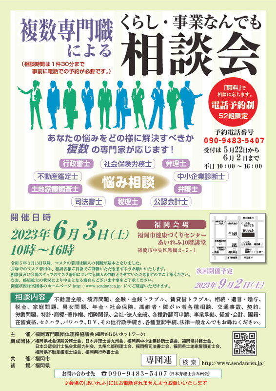 - 各士業による共同相談会(無料相談会)が開催されます。